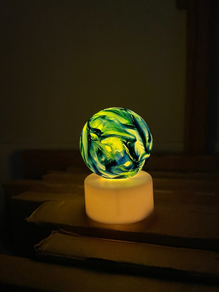 5. Turn on the tealight to illuminate your painted planet.