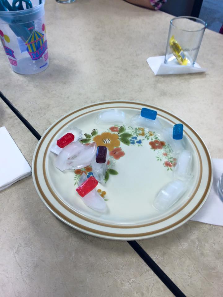 2. We placed jolly ranchers on ice cubes to see how the ice would melt: