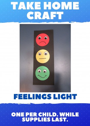 Craft: A feelings light. Kids can help communicate how they are feeling by utilizing red, yellow or the green light.