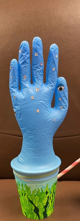 This was inside our big meeting room. My coworker found a parrot craft and an ocean beaded necklace craft. We did construct kits. This allowed families to either to bring home their craft or do it at the library. It also controlled how much supplies were used.