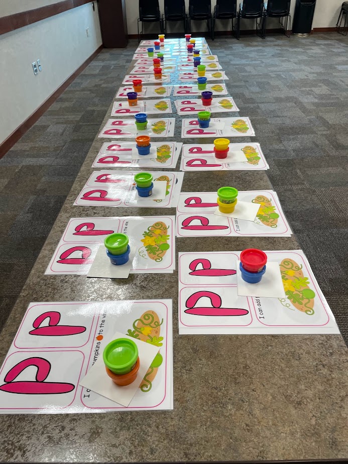 | Letter Recognition and Tactile Focus | I found these awesome sheets from Pre-K Printable Fun. I laminated them for future use. The kids got to pick if they wanted to work on the lowercase or uppercase letter “P”.![]() We then moved on to the bottom half of the sheet with making pumpkins. I started them with one large pumpkin. I then had them split their pumpkin into 2, 3, and 4. Source: Pre-K Printable Fun |