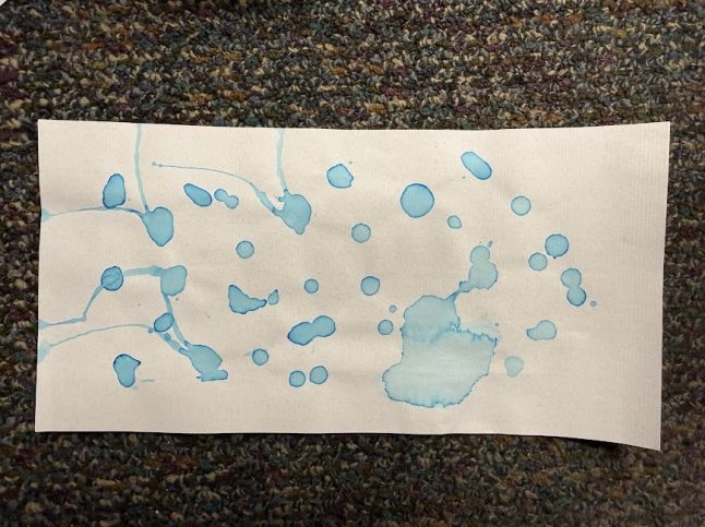 We provided a tiny bit of concentrated watercolor solution and a dropper for kids to take home. We challenged families to create droplets in different sizes.