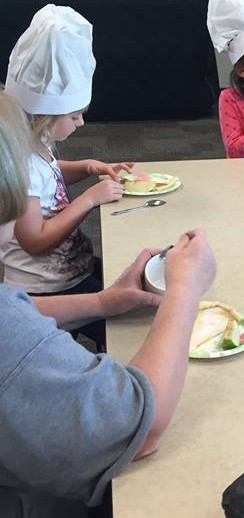 No cooking program should ever be complete without a chef’s hat! I gave the kids the option of making the chef hat for themselves or their dolls. Most of the kids picked making the chef’s hat for the doll. This is where I got the instructions for our hats.