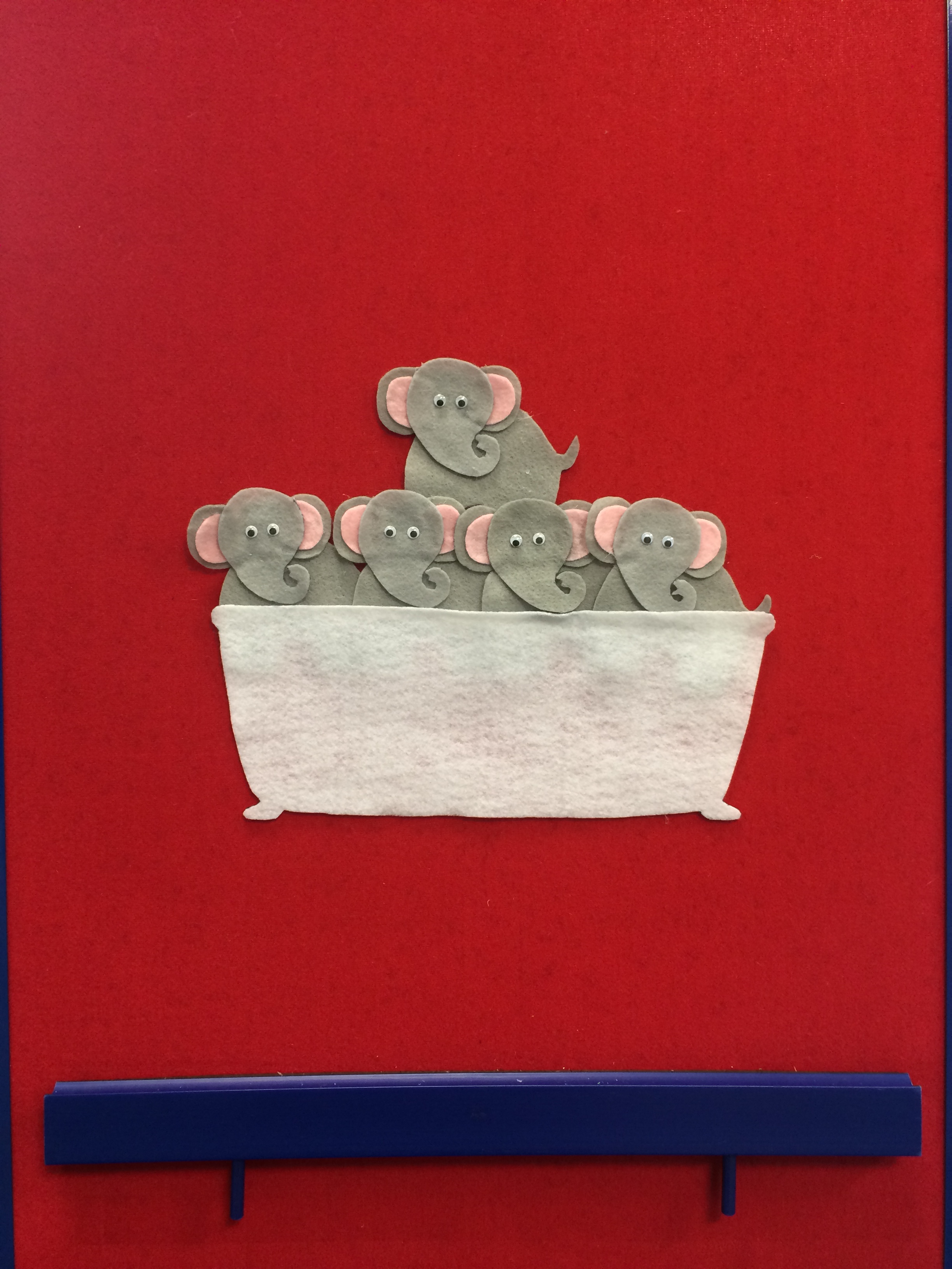 “Five Little Monsters Jumping on the Bed” was my flannel for this week. I found my monster template from Falling Flannel Boards and my bed template from Red Ted Art.