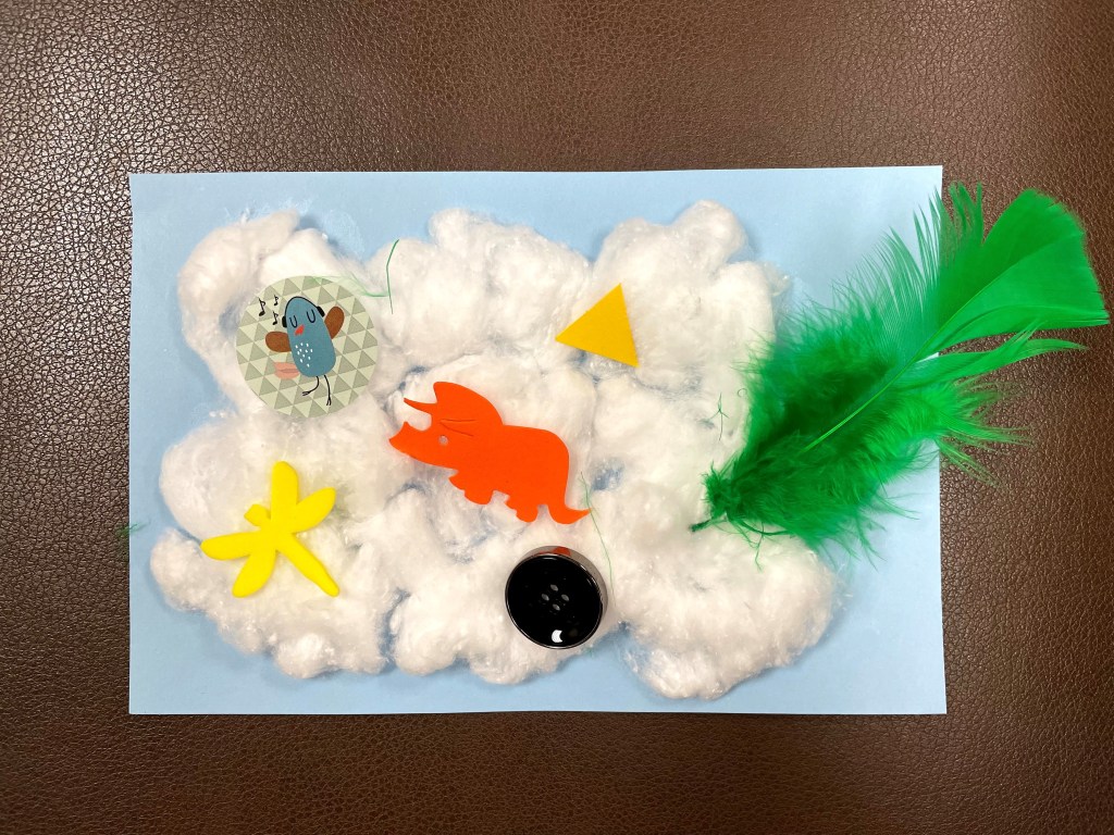 · Either the child or adult can then glue or place the rest of the objects on to the cloud.